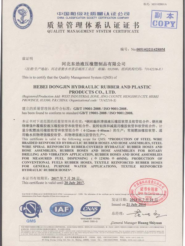 • 鋼絲編織管采用國際標(biāo)準(zhǔn)認(rèn)可認(rèn)可證書